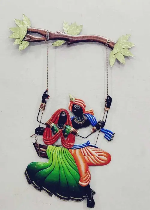 Radha Krishna Riding On Swing Made Wall Hanging